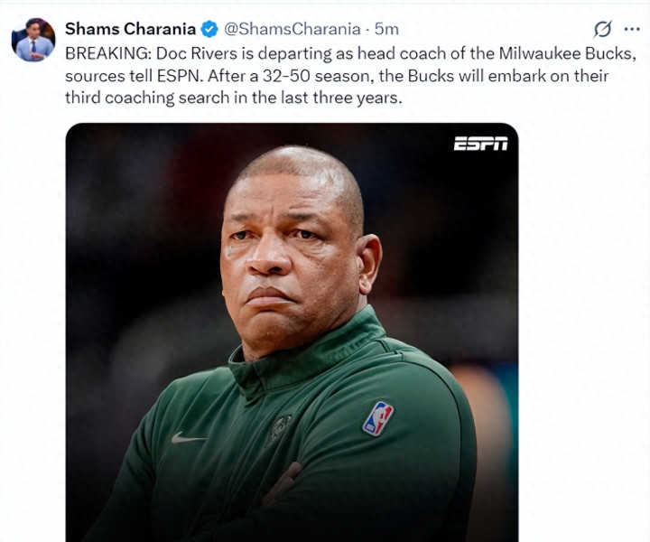 智赢策略 里弗斯卸任雄鹿主帅! 2次首轮+今年无缘附加赛 鹿蜜狂刷就不该请他